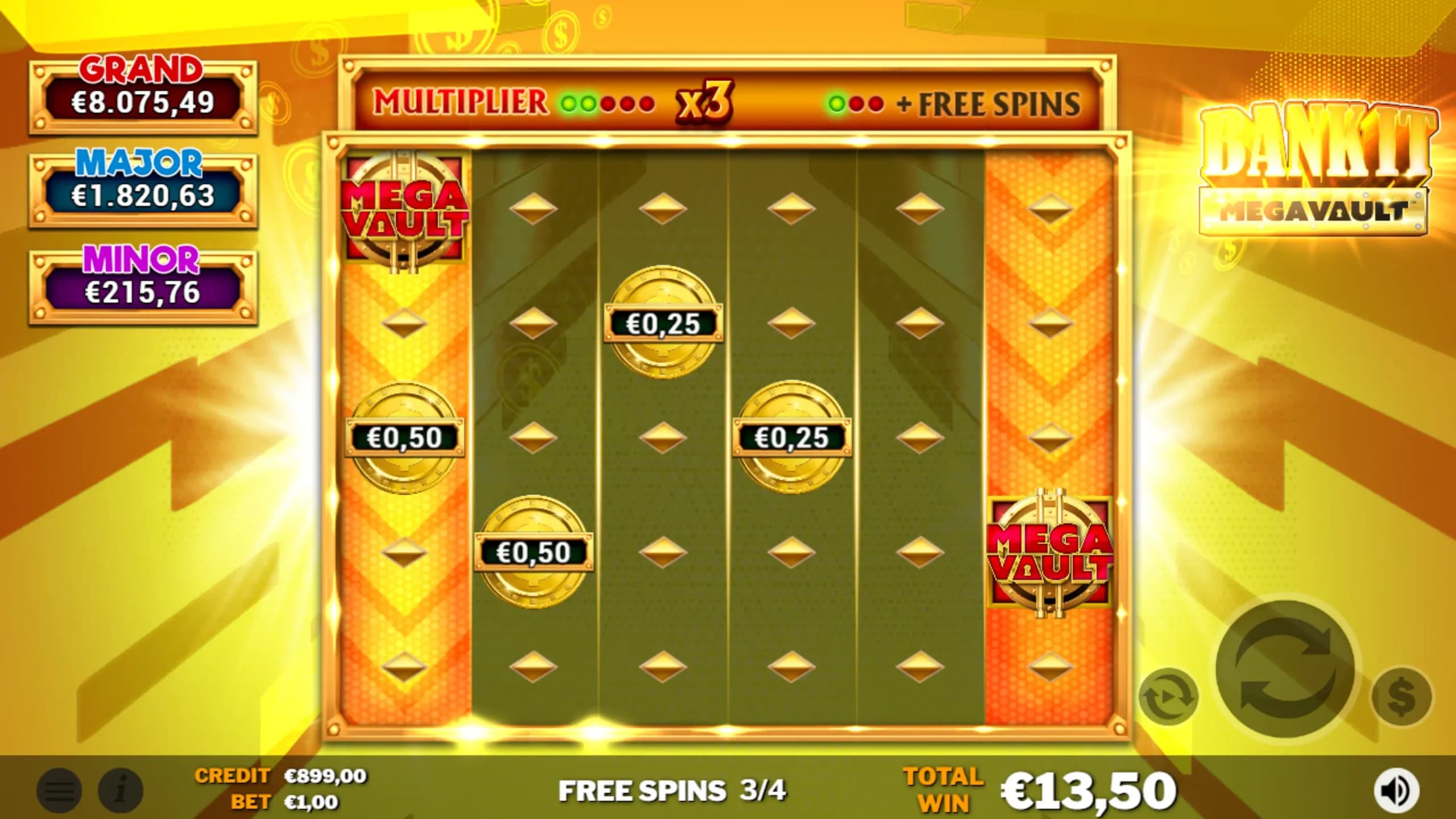Step into the ultimate gold rush! Bank It Megavault is a 6x5 cascading slot where every win fuels reel multipliers. Choose between Free Spins with unstoppable multipliers or the high-stakes Megavault Collector Bonus.