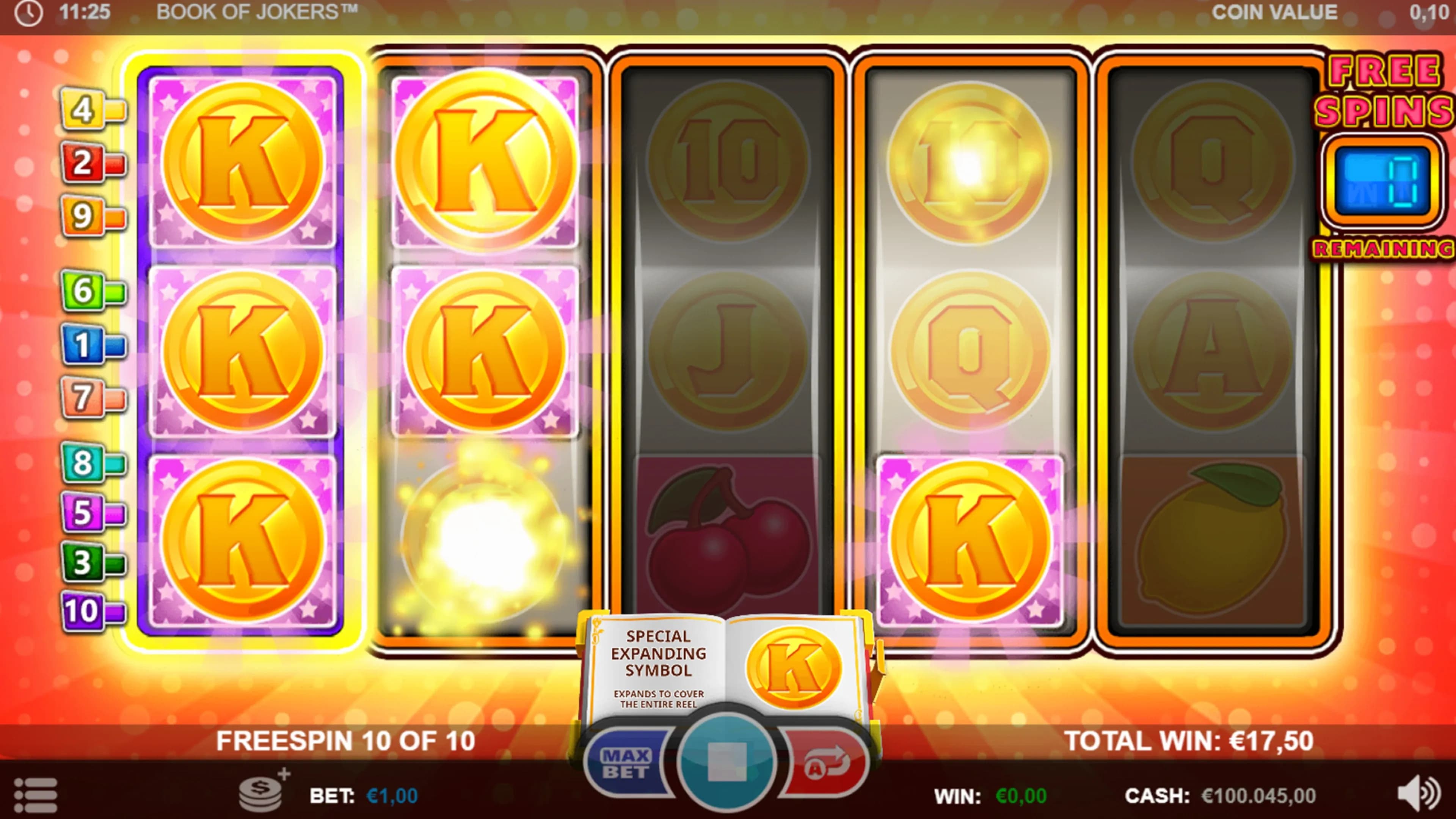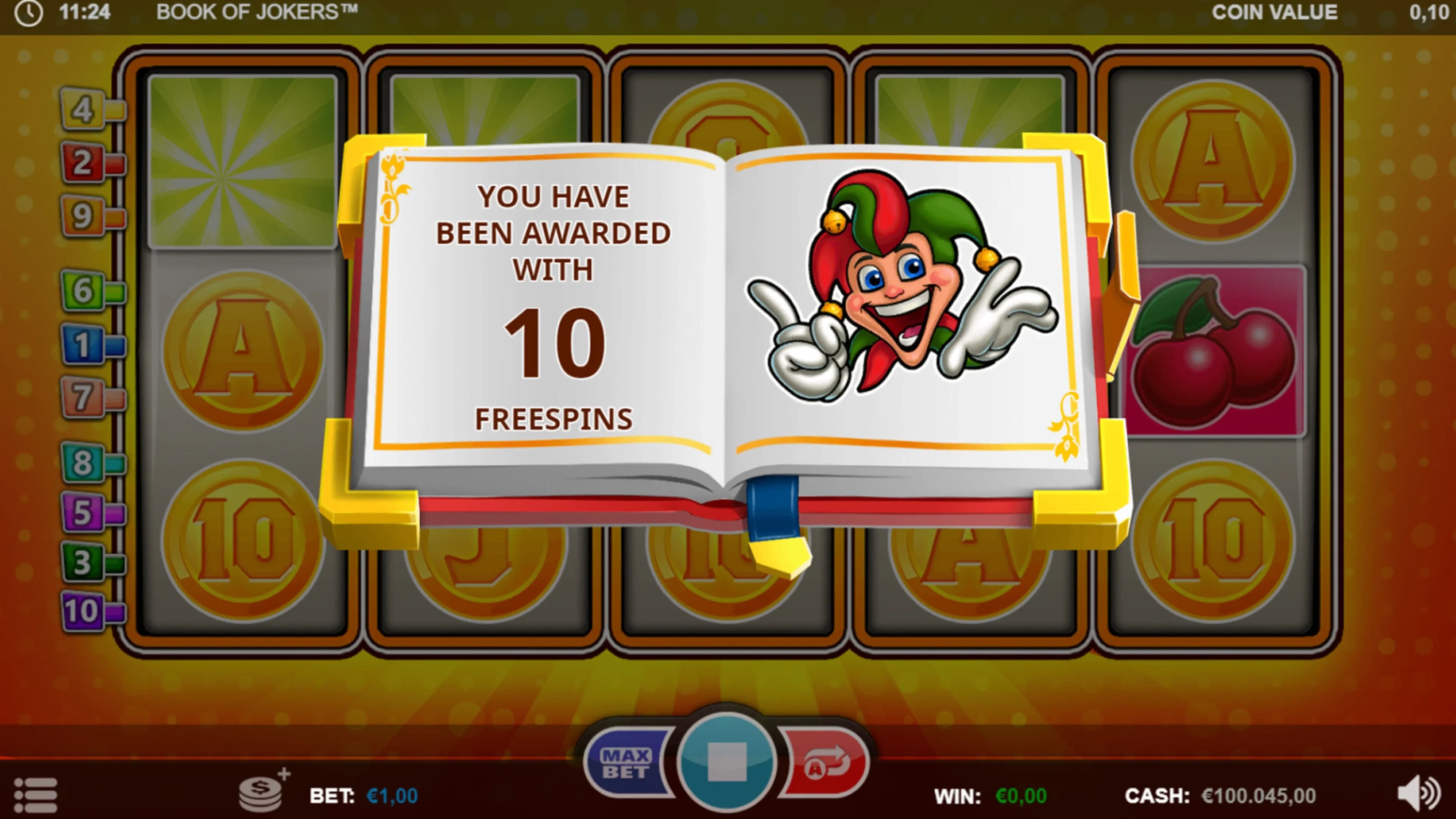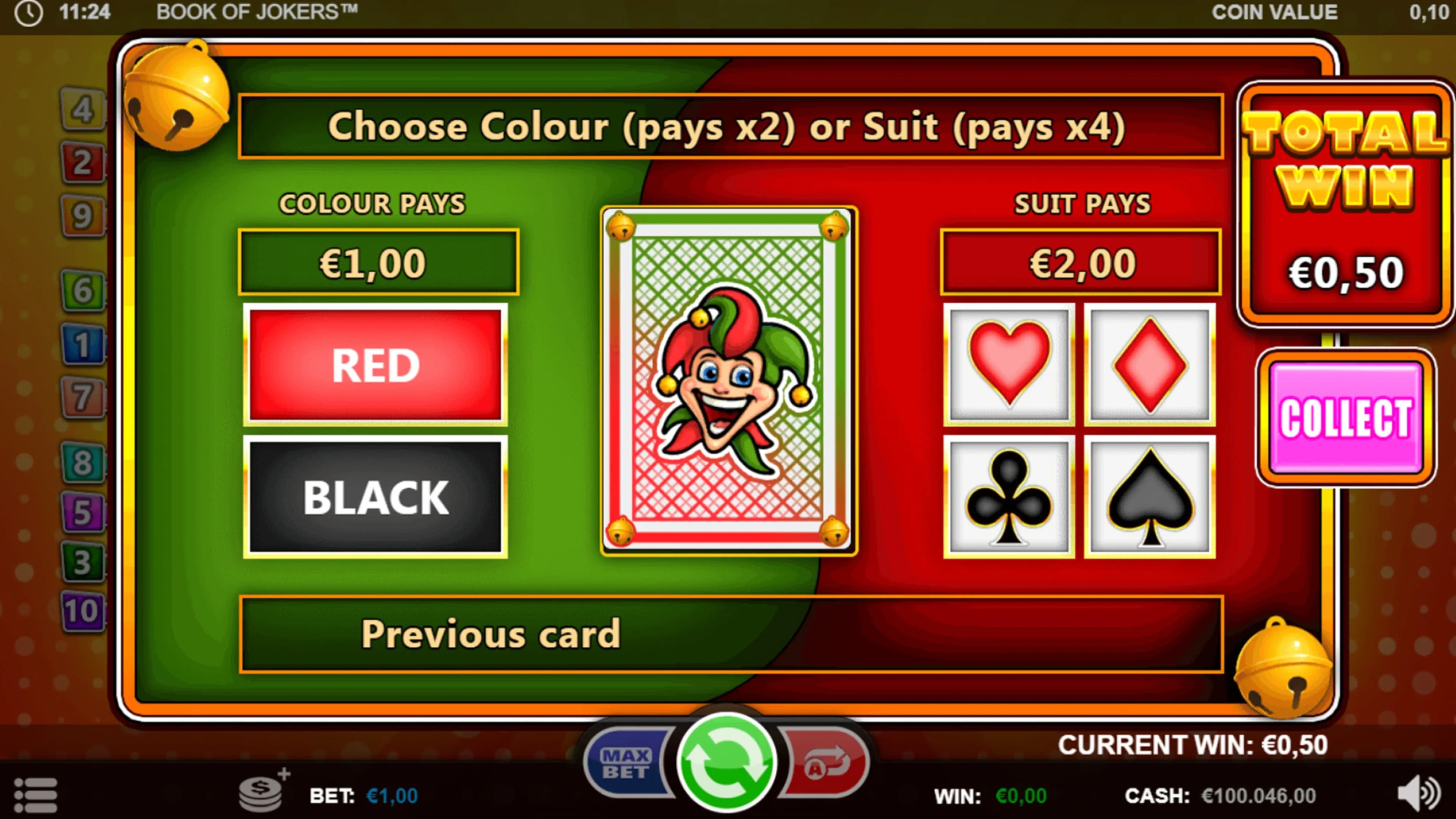 Spin into classic slot fun with Book of Jokers! Enjoy 5 reels, 10 win lines, and playful Joker excitement. Unlock Free Spins with Scatter Books and use the Gamble feature to risk wins up to 10 times for payouts of up to 5,000 coins.