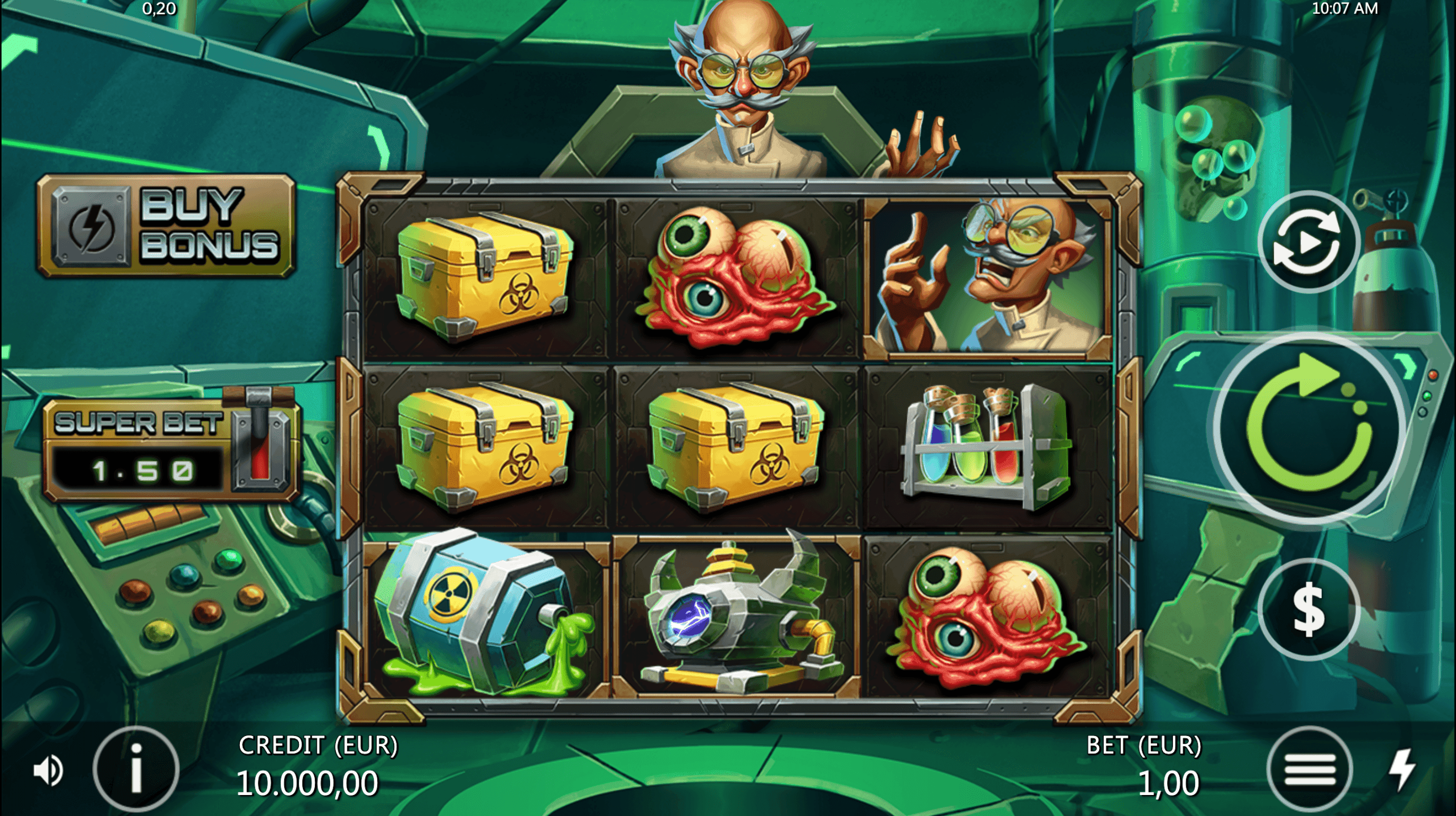 Unleash mayhem in Dr. Wild’s lab! Spin, shock, and spark jackpots as electrifying experiments bubble, fizz, and explode where mad science meets mega wins in a chaotic, coin-filled frenzy!
