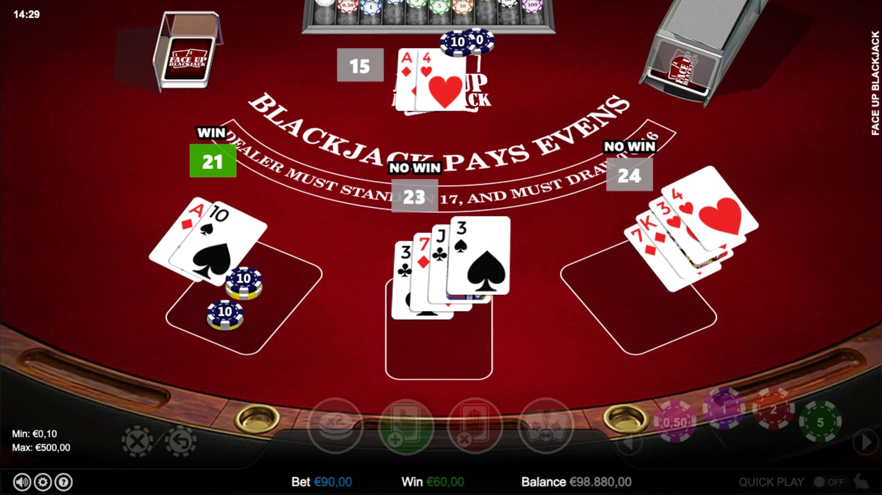 Enjoy a bold twist on the classic game where you can see both dealer cards! Sharpen your tactics, make smarter moves, and go all-in for that perfect 21.
