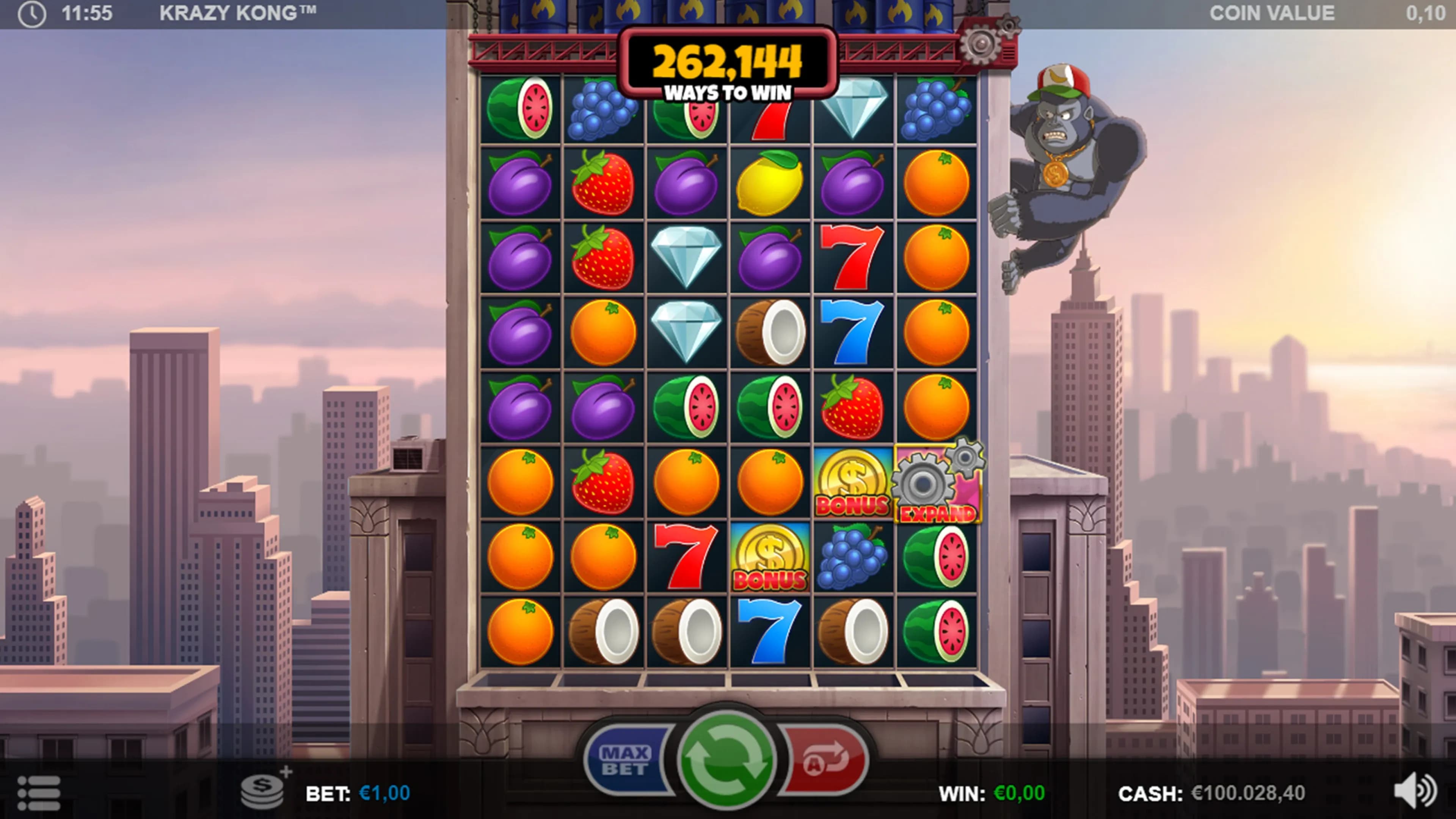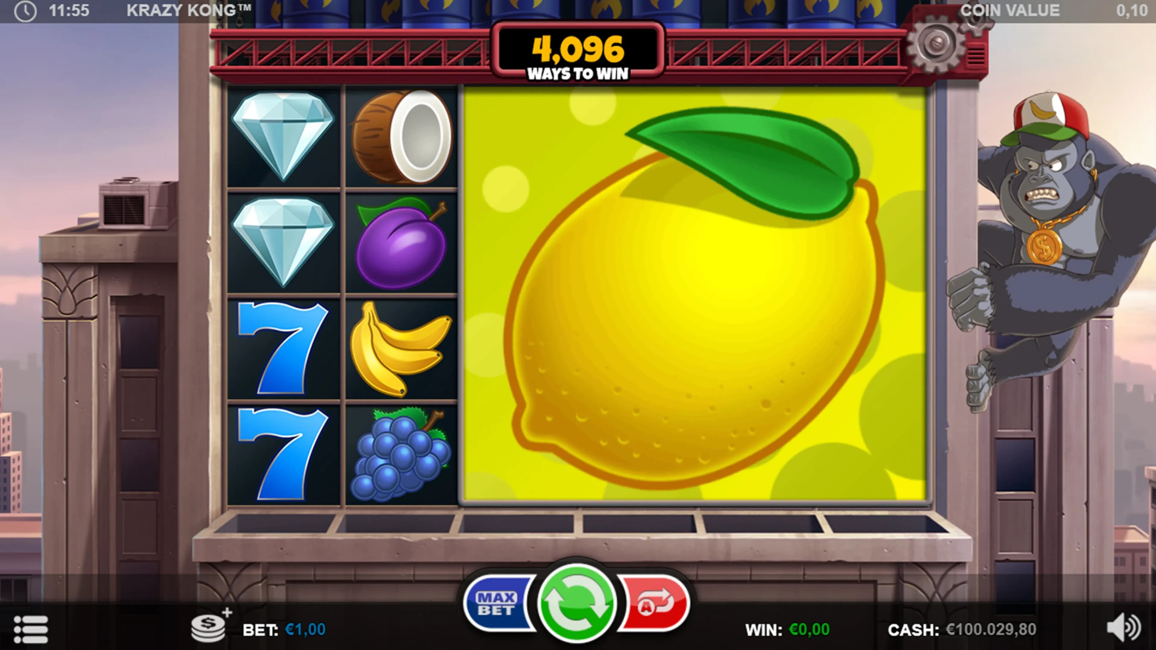 Climb the skyscraper in Krazy Kong, a 6x4 video slot with 4,096 ways to win expanding up to 262,144. Unleash matrix-expanding scatters, Oil Barrel Wilds with mystery multipliers, giant symbols, and thrilling Krazy Free Spins.