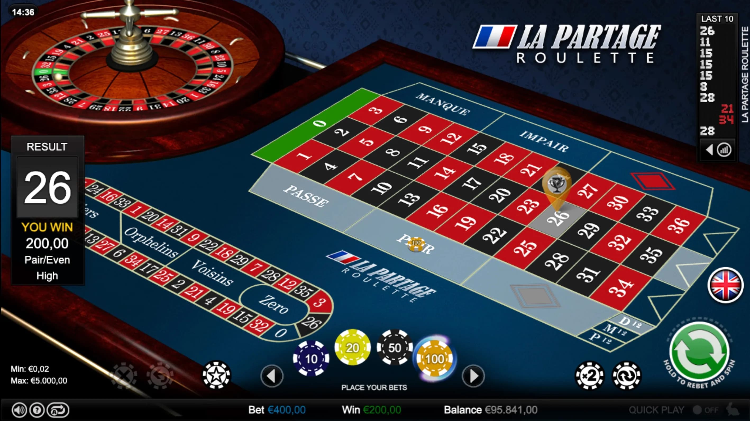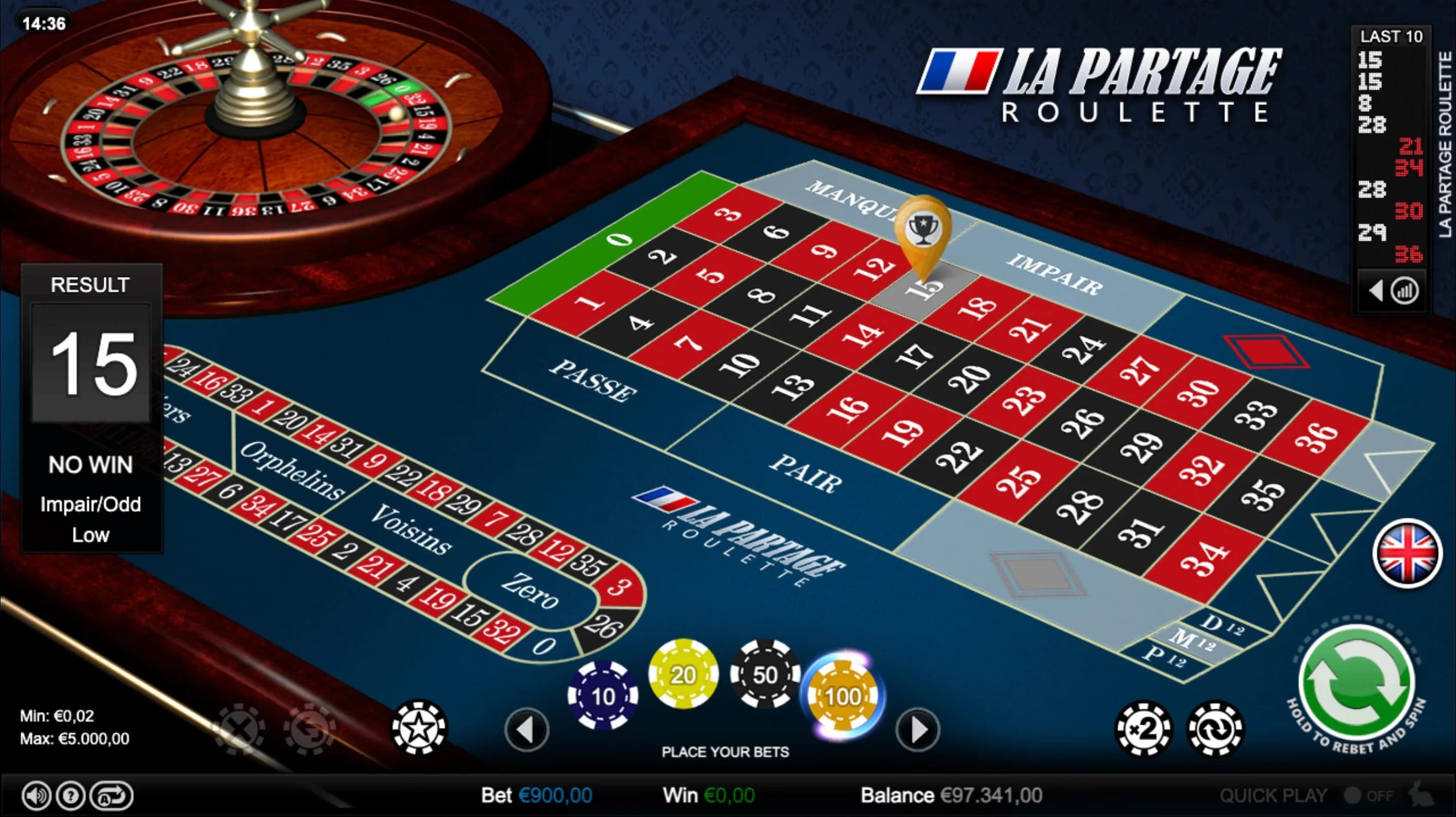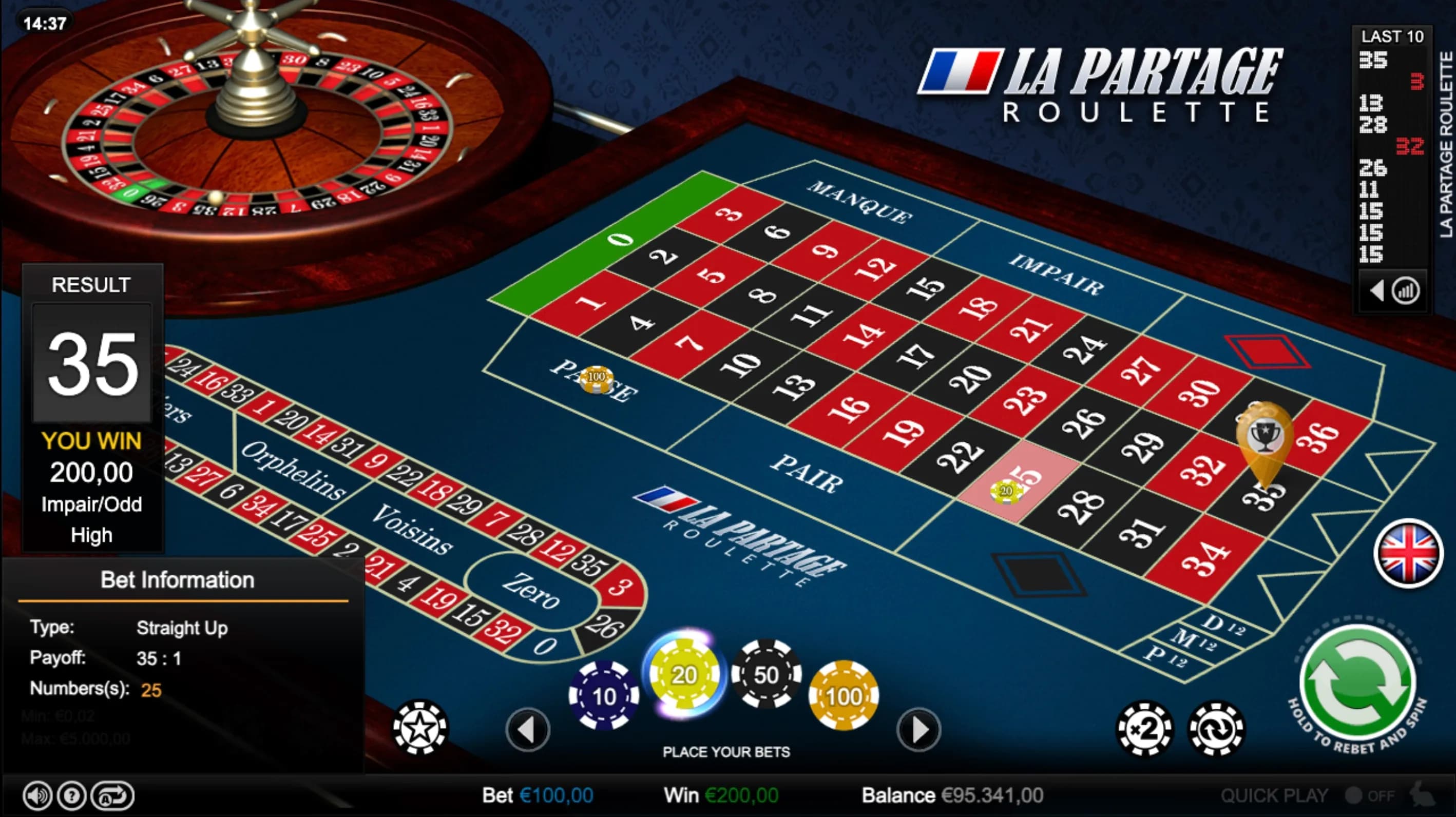 Refined, fair, and classically European-La Partage Roulette gives players an edge with half-back on zero spins. Place smart bets and enjoy authentic, smooth table action.