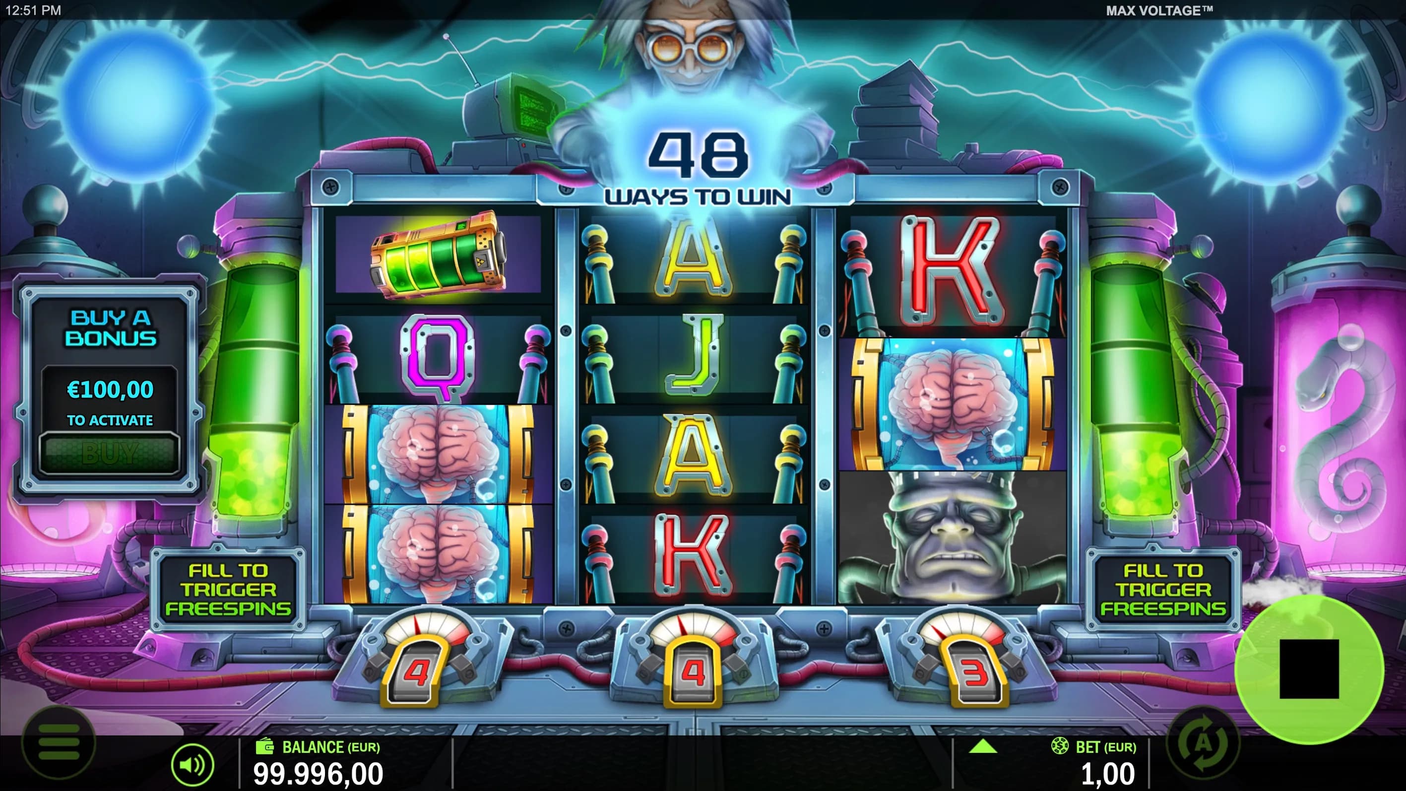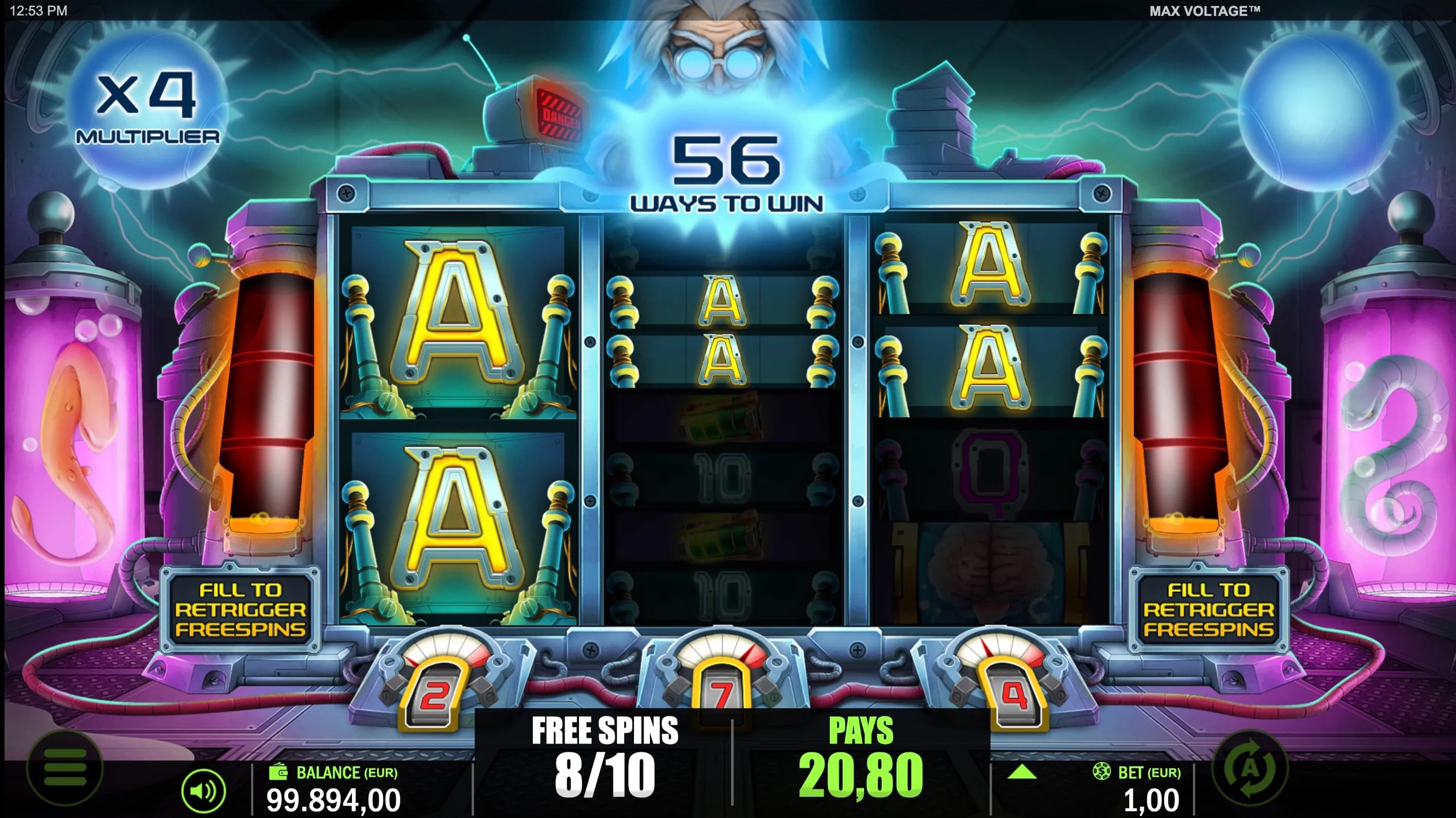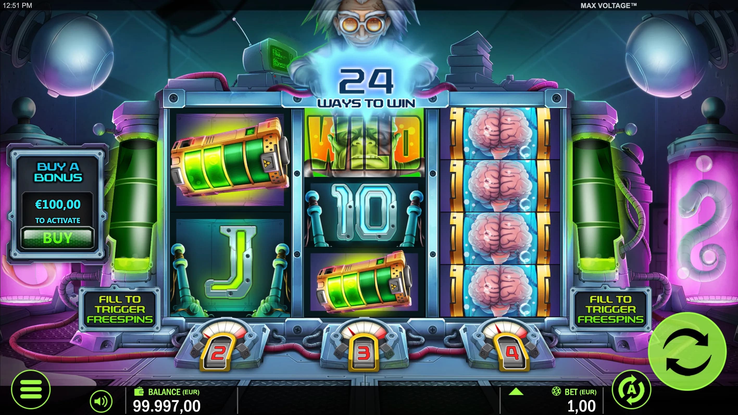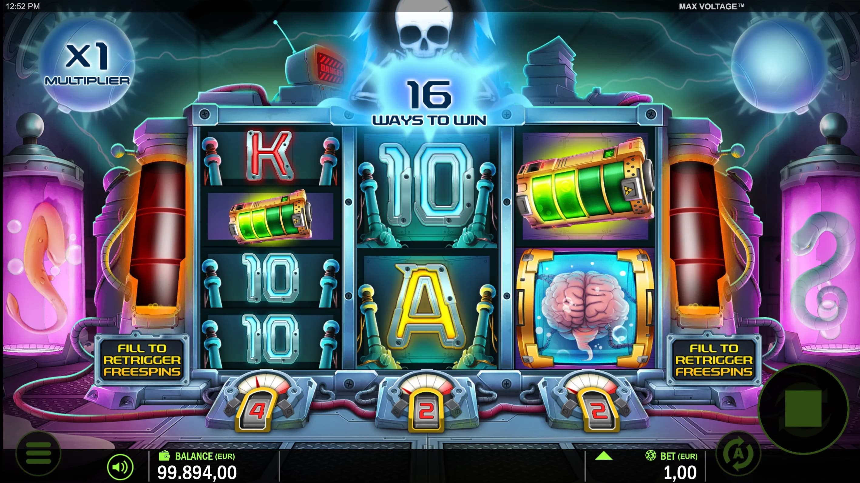 Max Voltage electrifies with 8–512 random ways to win each spin! Land 3 Monsters for 10 Free Spins where Monsters turn Wild and boost a persistent win multiplier. Re-trigger spins, gamble wins up to 10 times, or buy instant bonus entry.