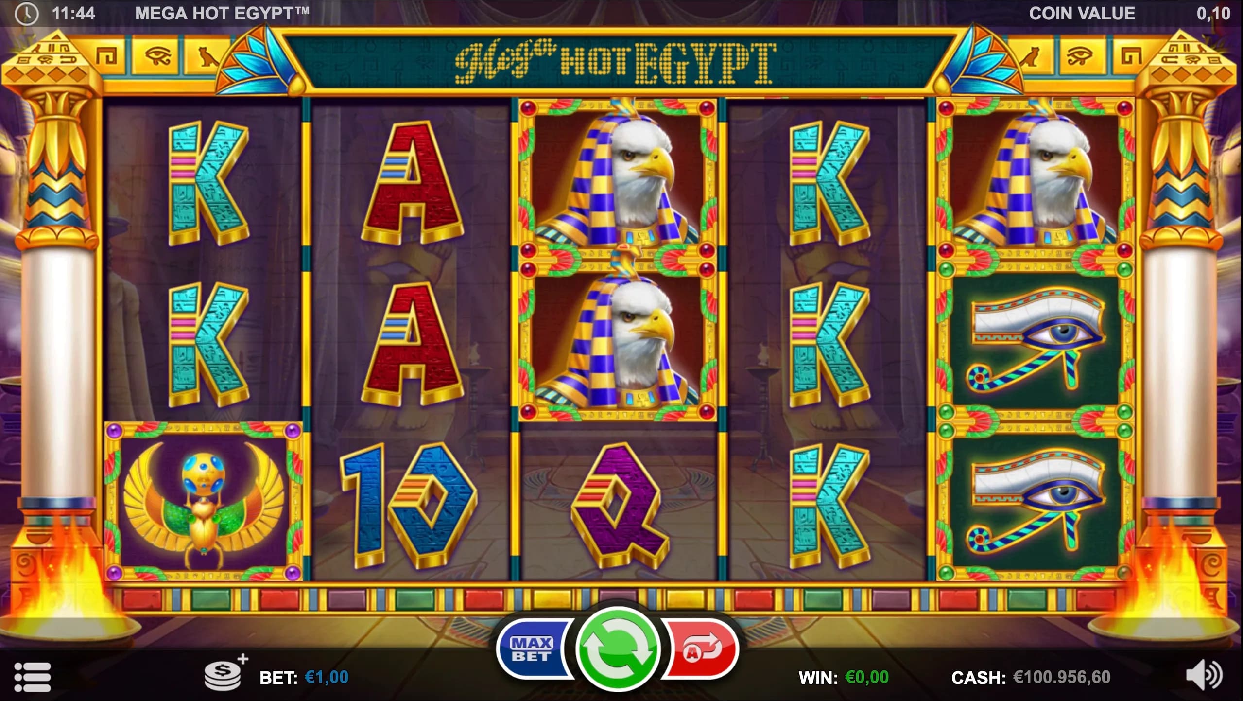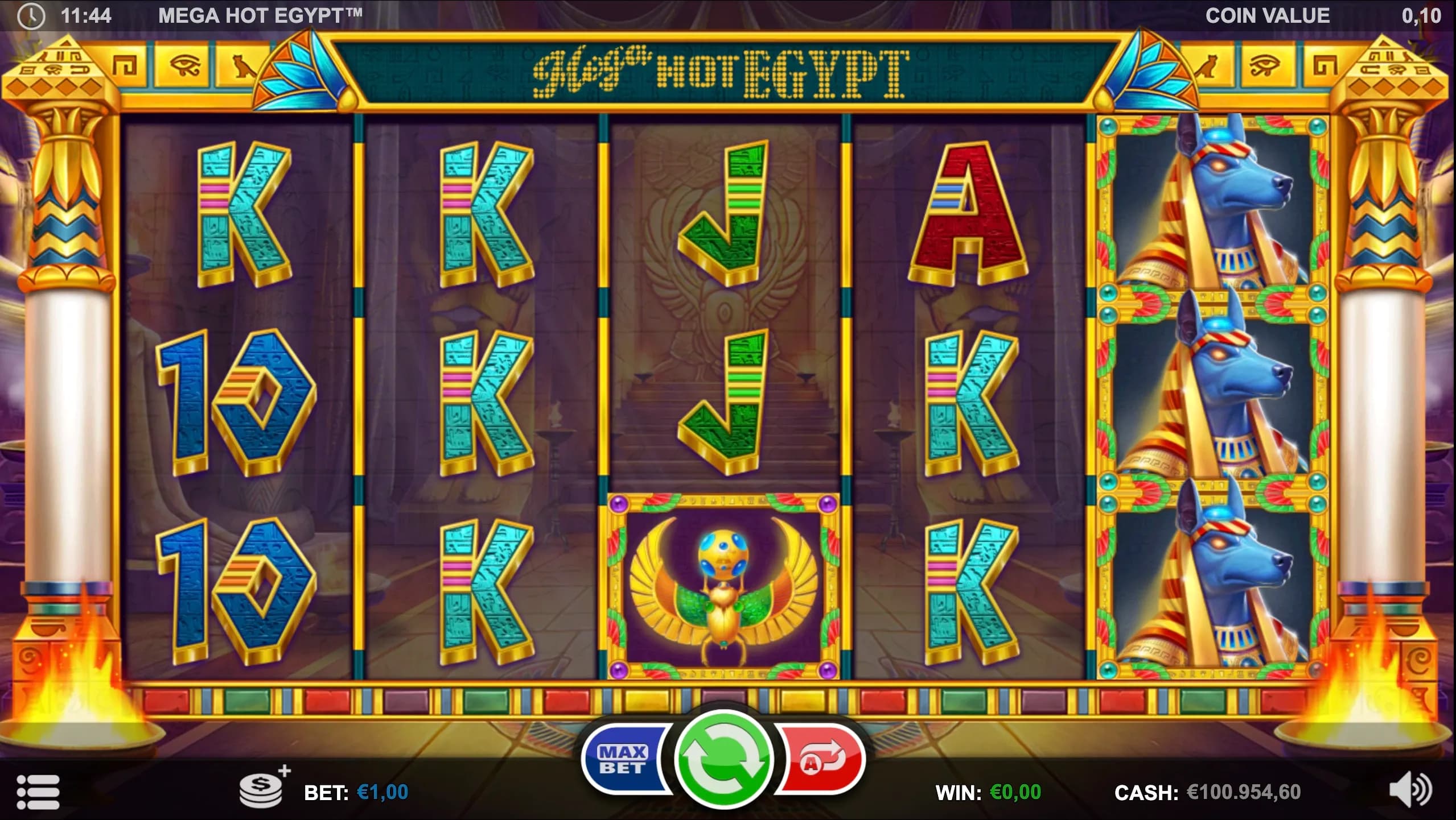 Mega Hot Egypt lights up the pyramids with 5-reel, 10-payline classic slot thrills. Standard and multiplier Wilds boost wins up to x6, while the Red/Blue Gamble offers double-or-nothing excitement for fiery Egyptian riches on every ancient spin.