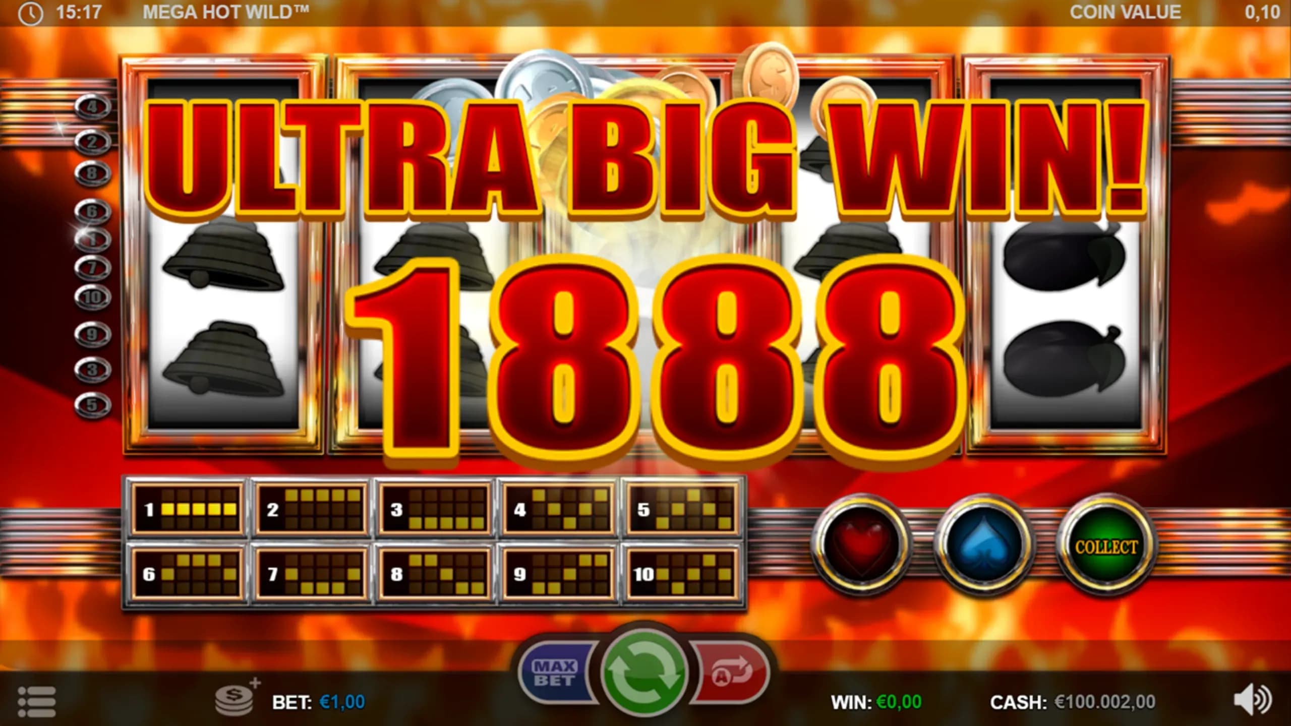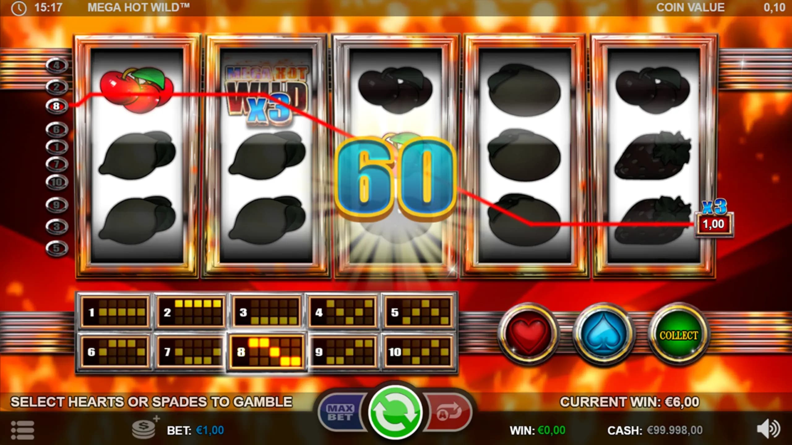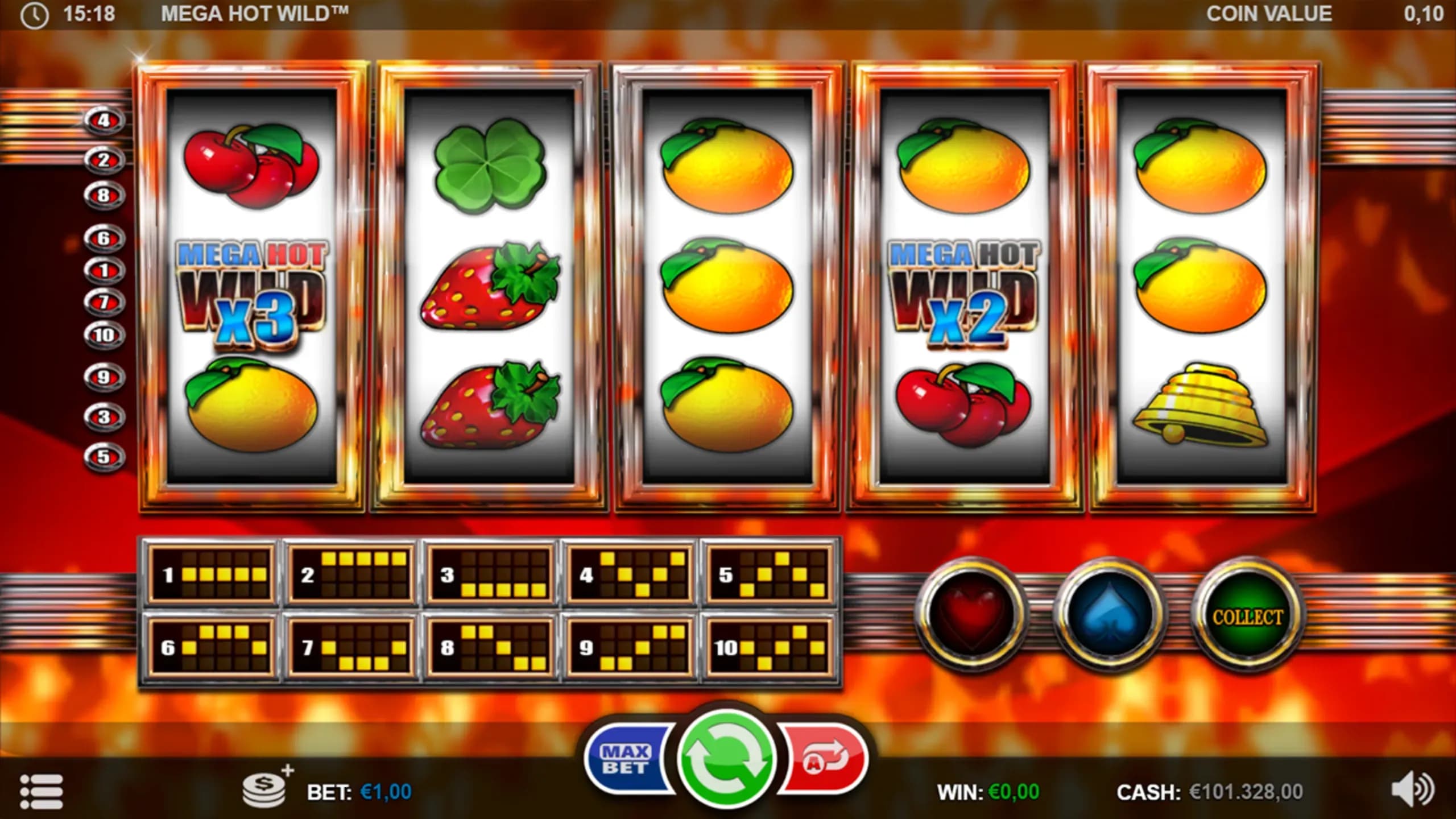 Mega Hot Wild brings fiery 5-reel, 10-payline excitement with standard and multiplier Wilds delivering up to x6 wins. Land winning combos and choose to collect or double with the Red/Blue Gamble.