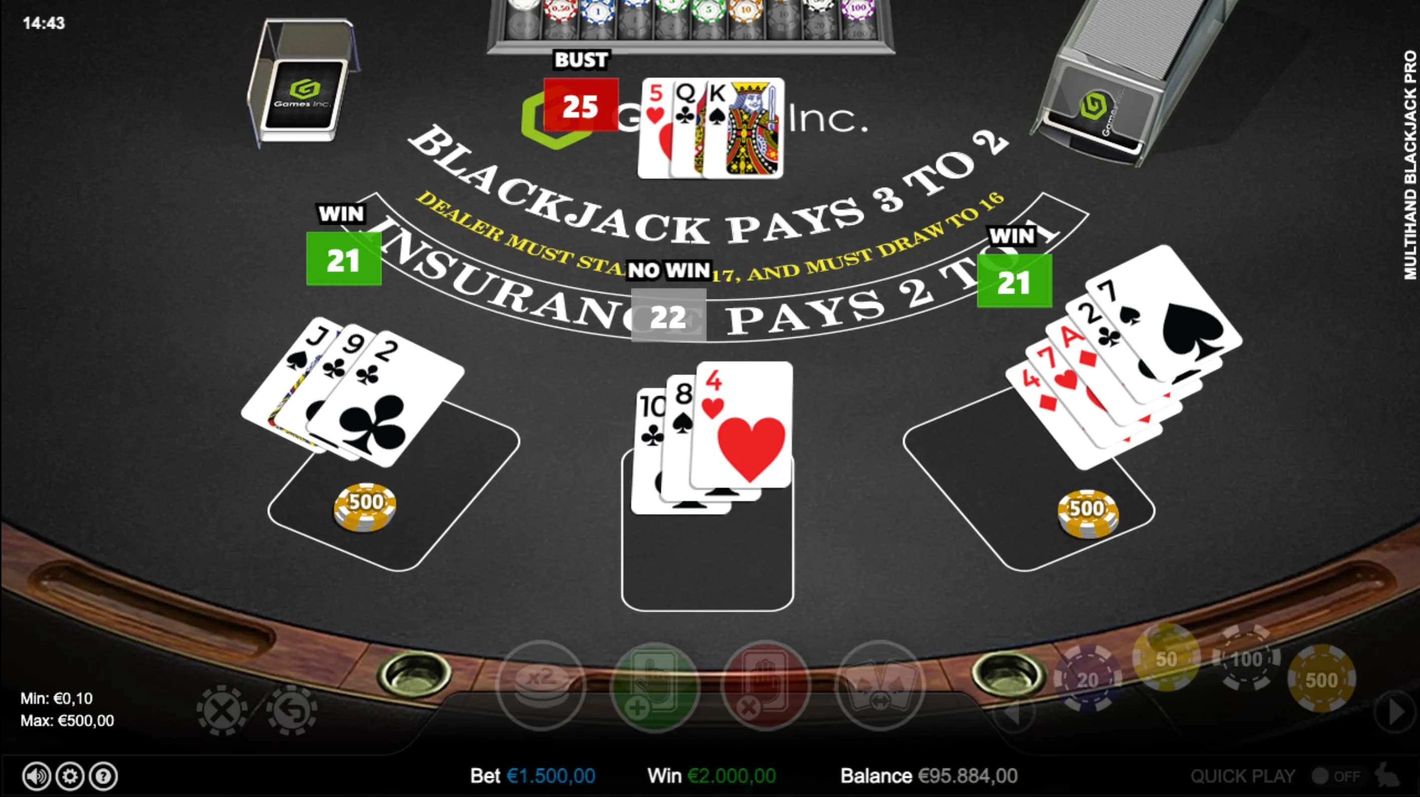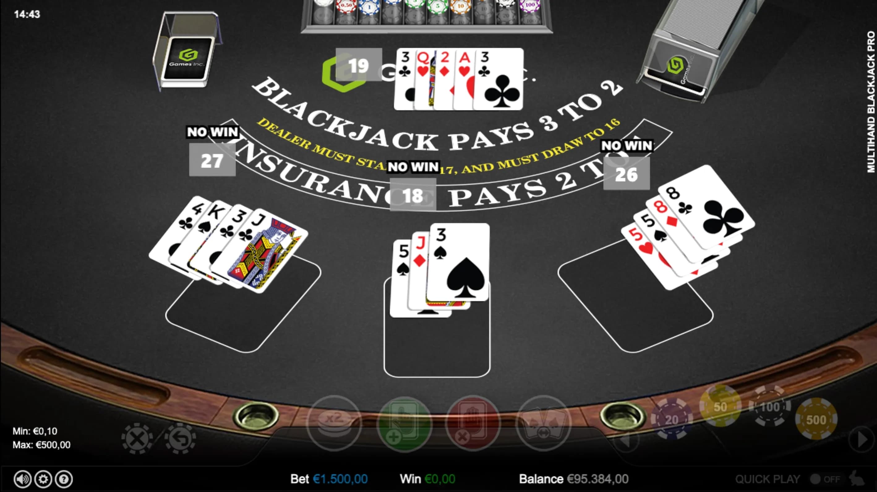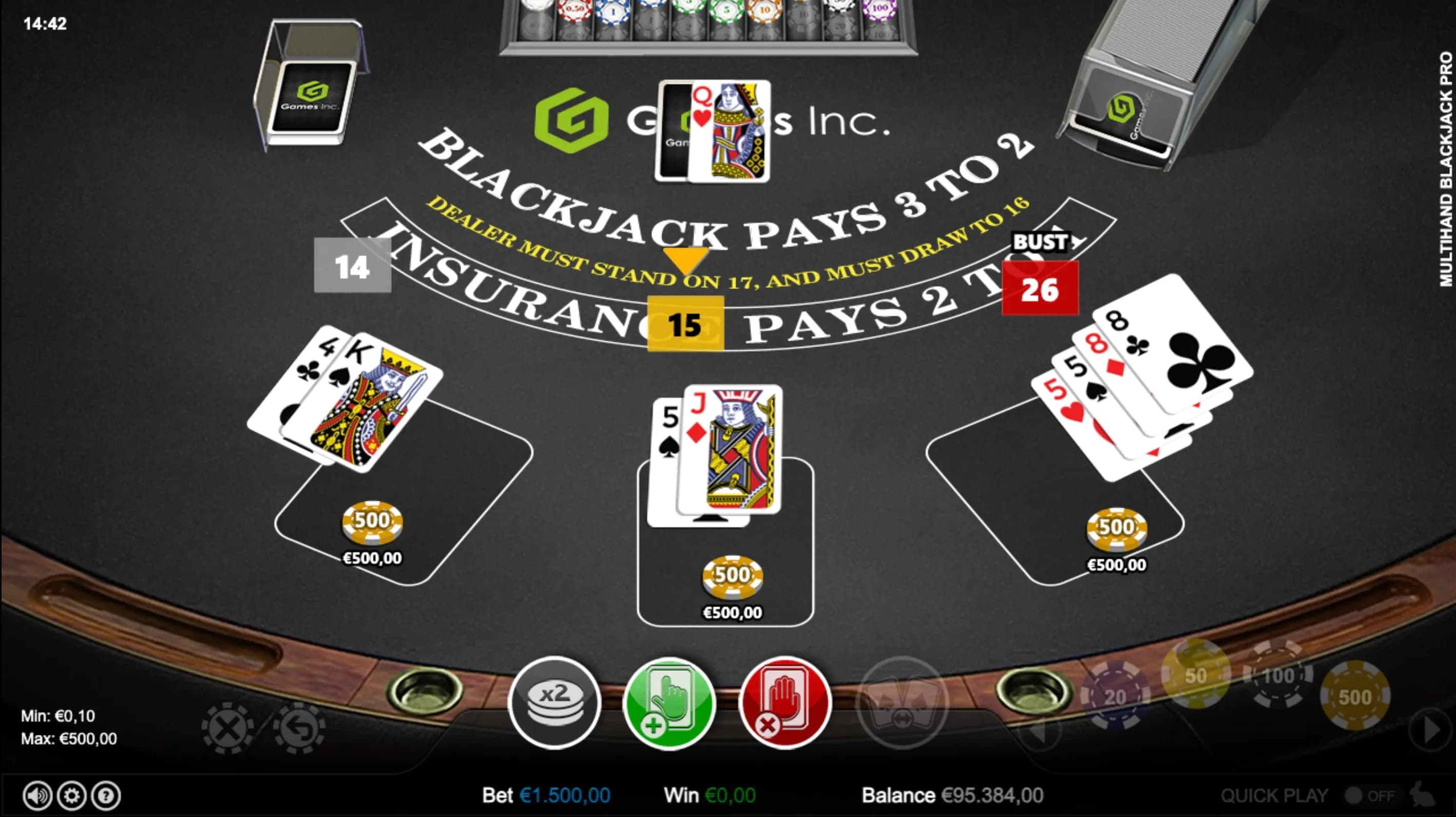 Go pro with Multi Hand Blackjack! Play up to five hands at once, master every move, and chase the perfect 21 for double the intensity and nonstop table action.
