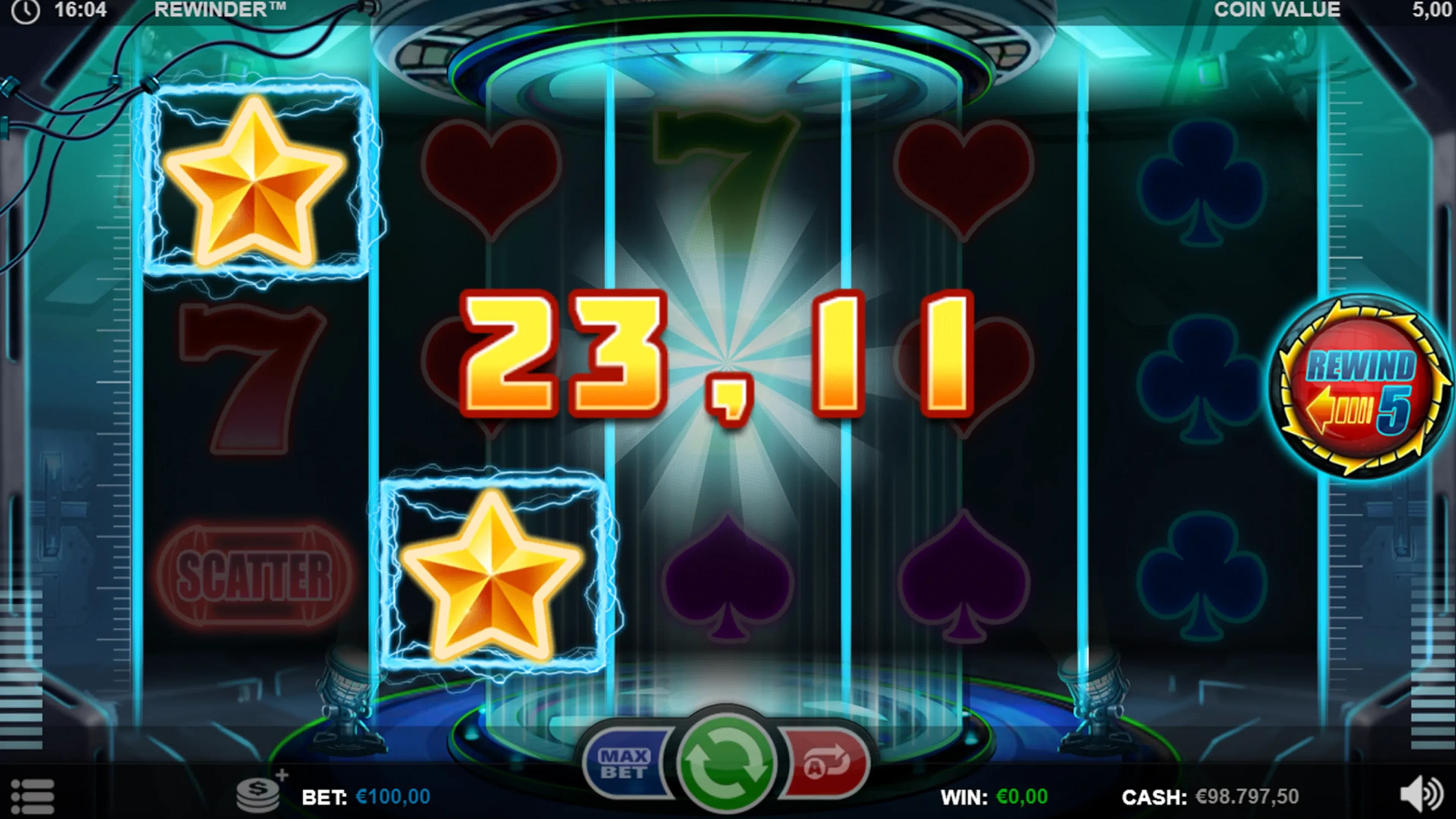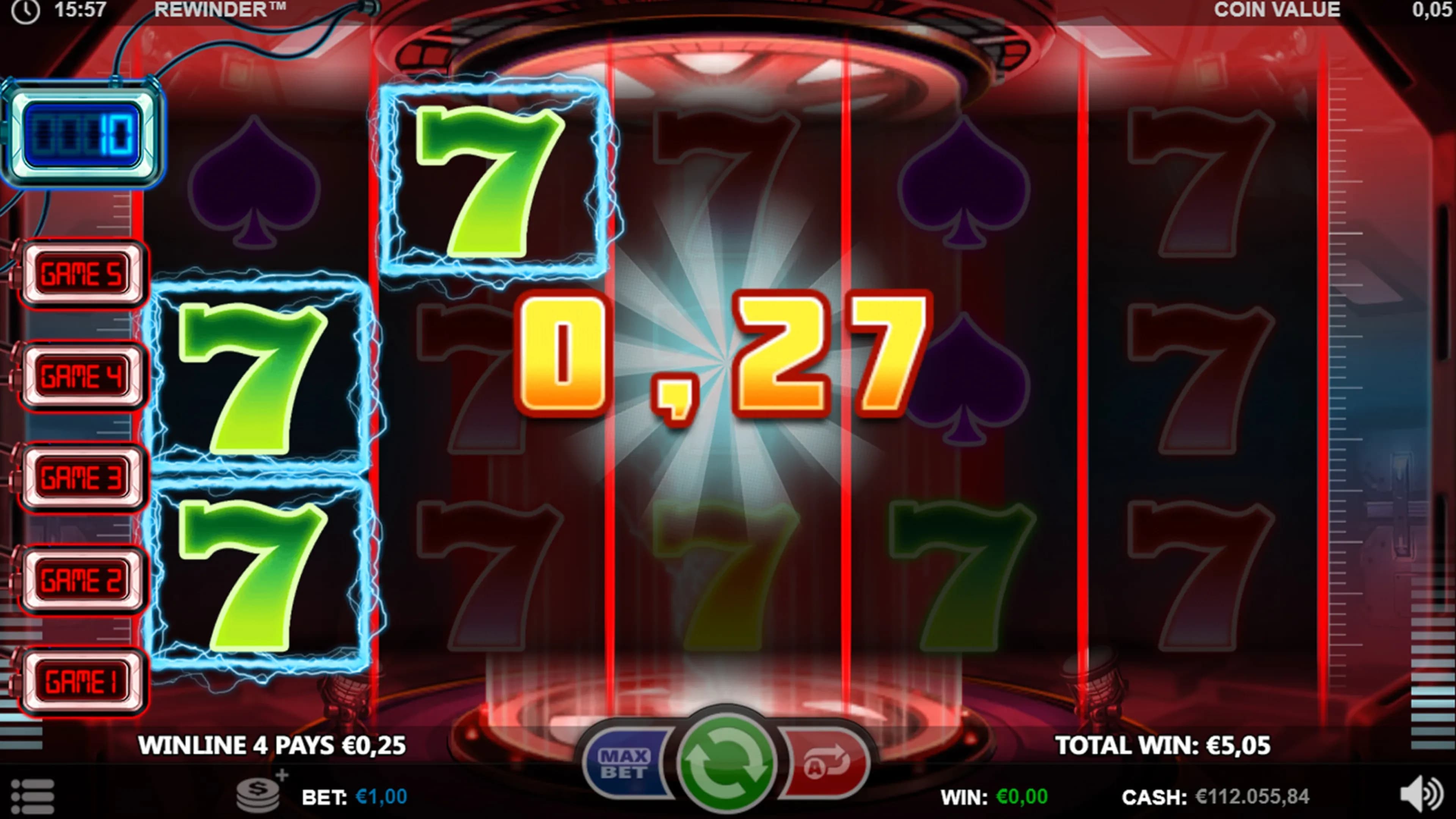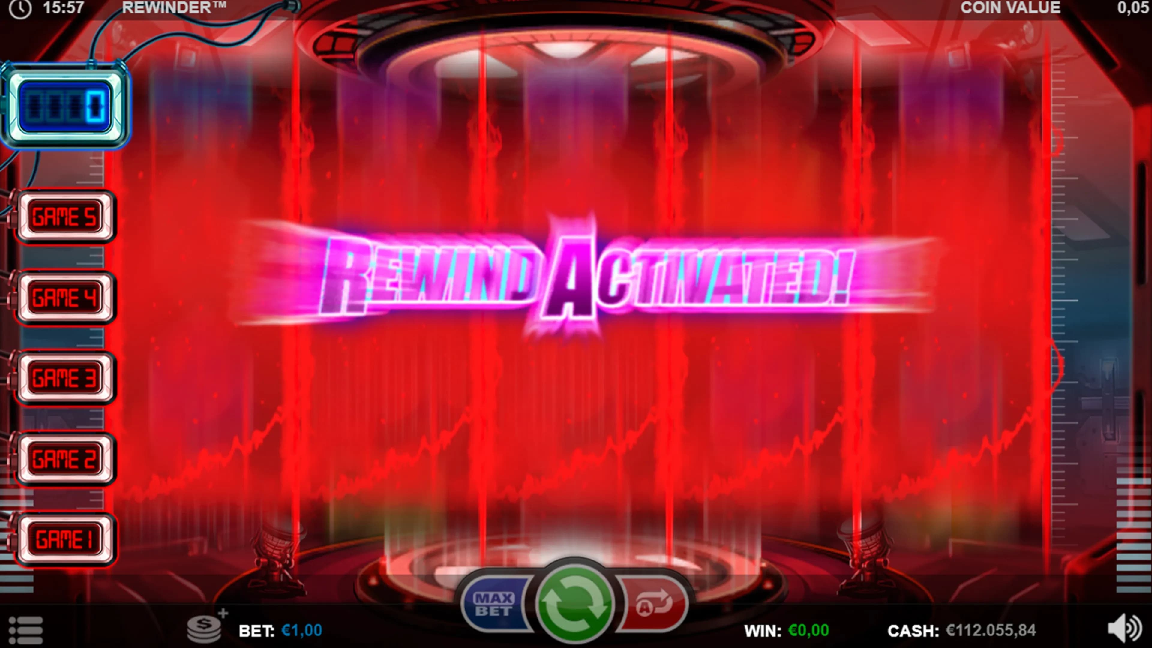 Step into Rewinder, a 5x3, 20-line slot where every spin can be replayed! Collect Rewind Scatters to trigger the Rewind Button, relive previous spins, and enjoy Free Spins with extra chances to stack wins and rewind time for bigger rewards.