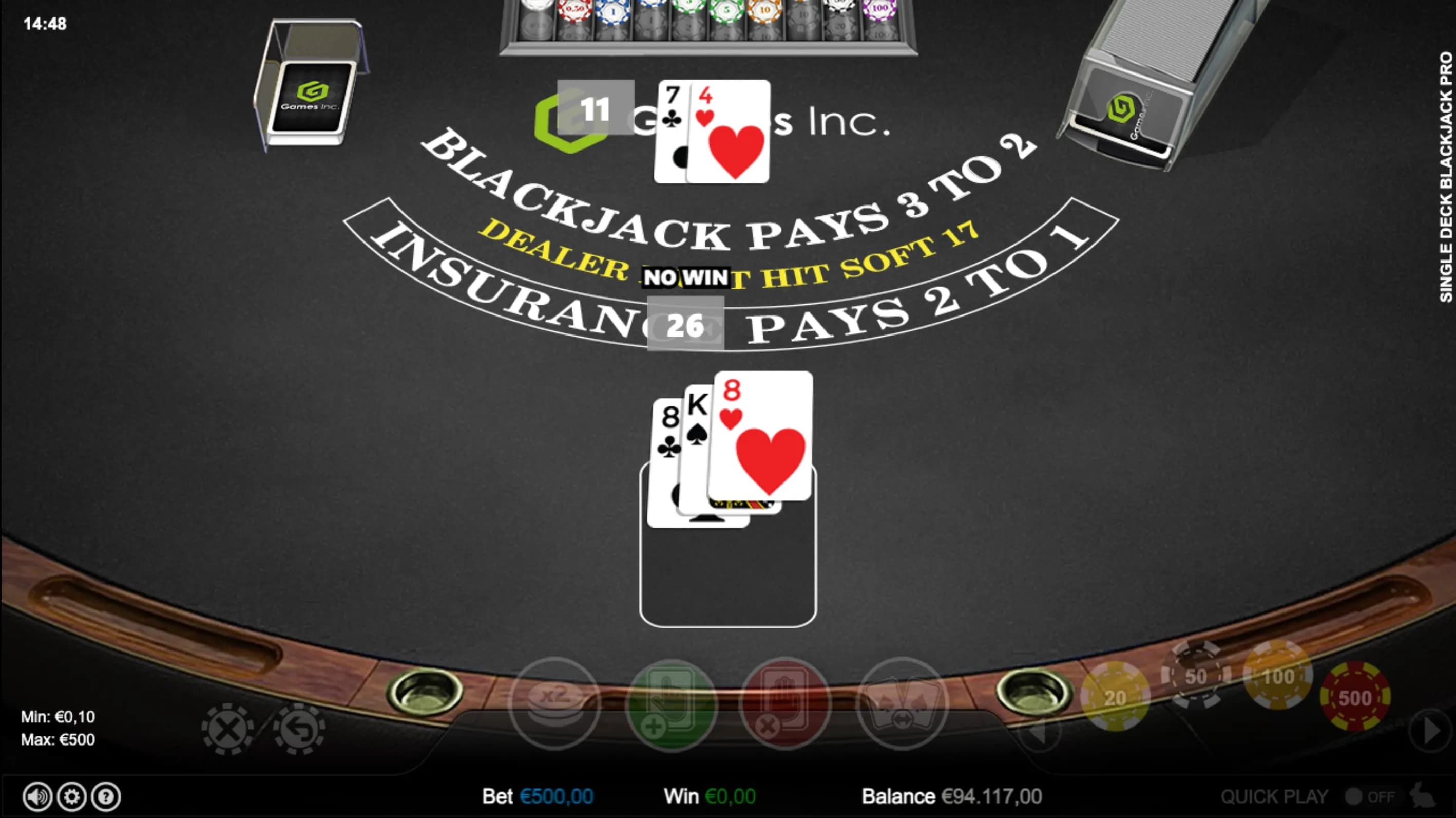 Master pure strategy in Single-Deck Blackjack! With fewer cards and higher odds, every hand counts, outsmart the dealer, stack your chips, and play like a seasoned pro.