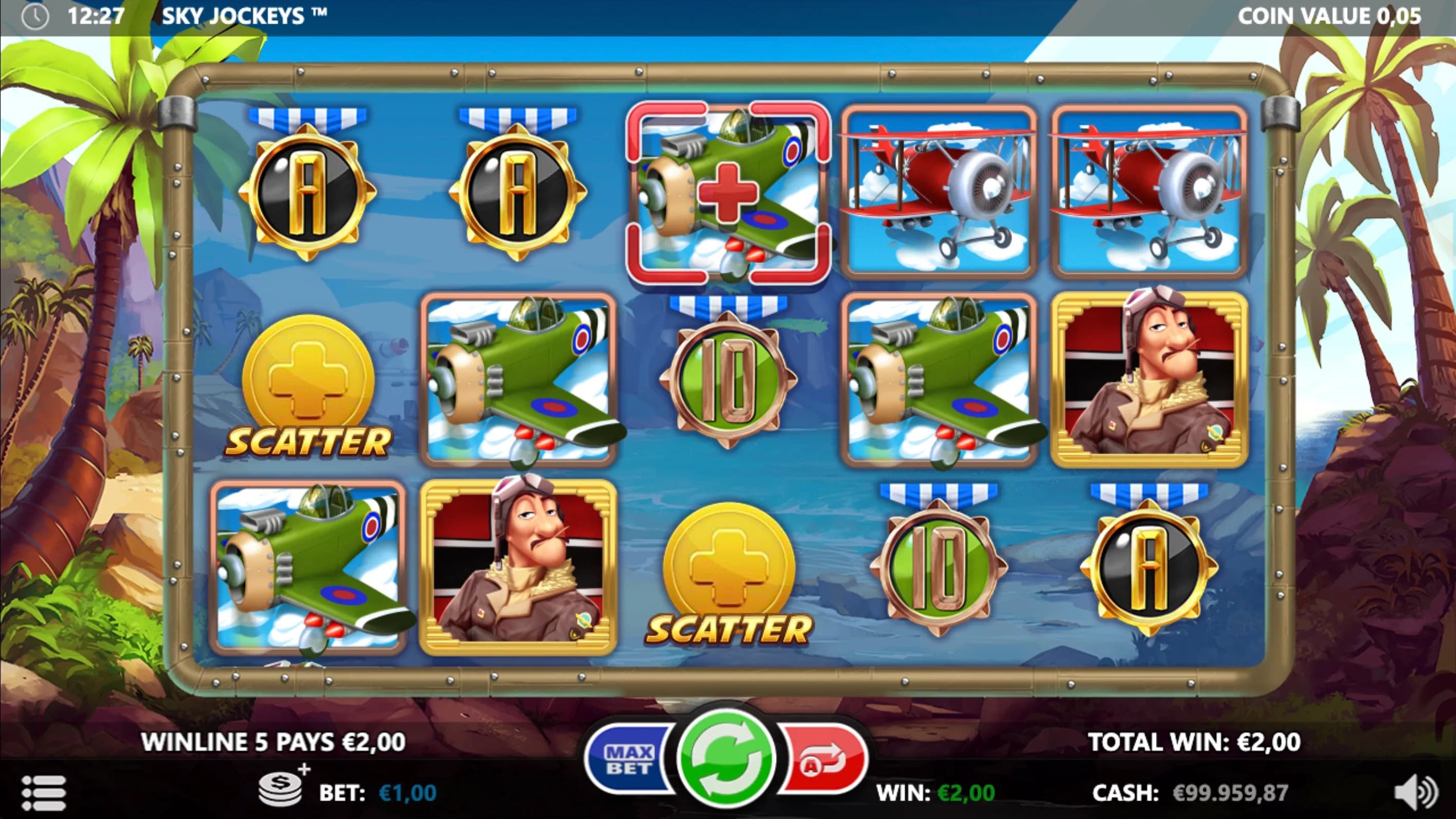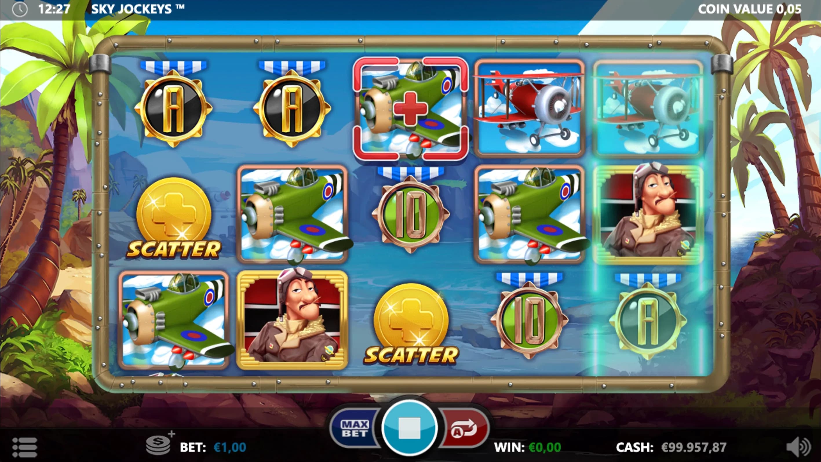 Take to the skies in Sky Jockeys, a 5x3, 20-line slot of high-flying rewards! Hit crosshair targets to drop explosive crates with Wild Reels, Multipliers, Instant Prizes, and thrilling Free Spins.