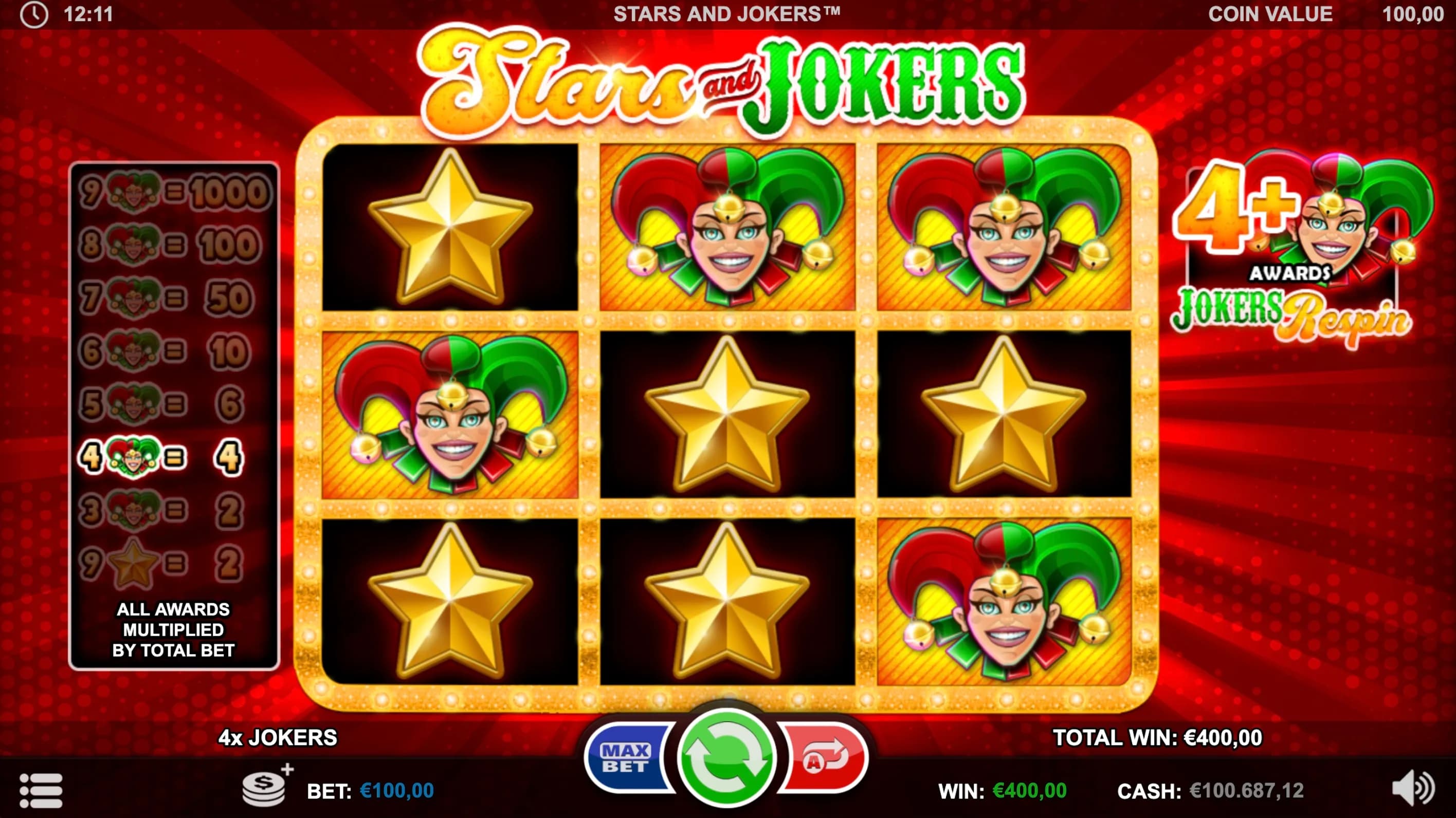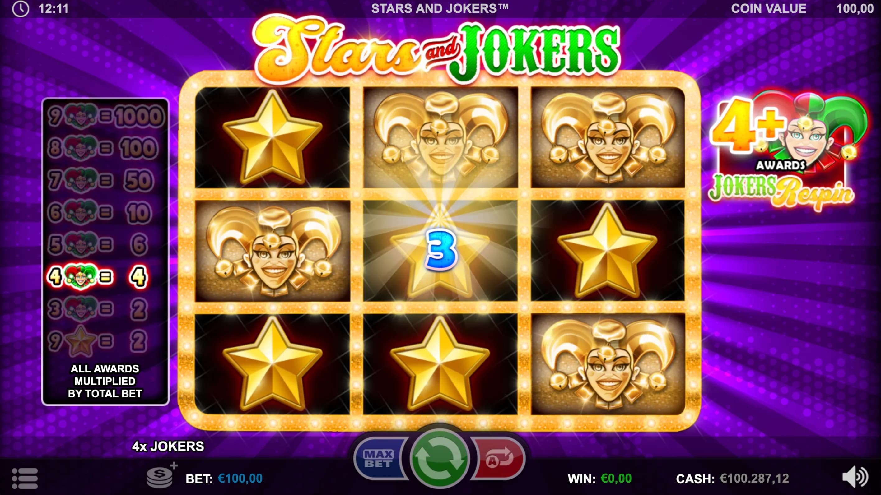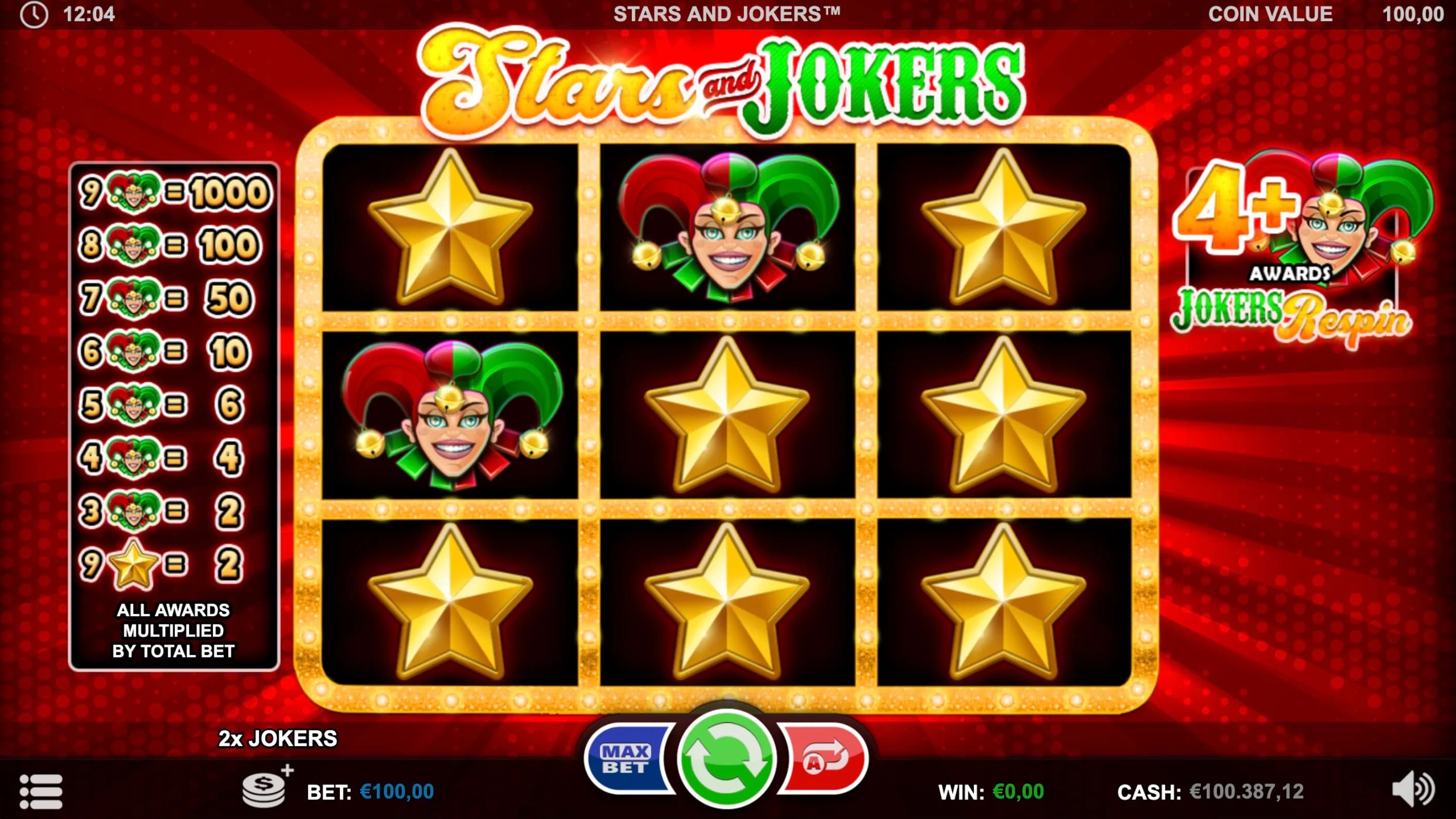 Experience nonstop thrill in this unique 9-reel slot featuring only Jokers and Stars! Land four or more Jokers to ignite golden Respins, where locked Jokers boost every spin for blazing win potential!